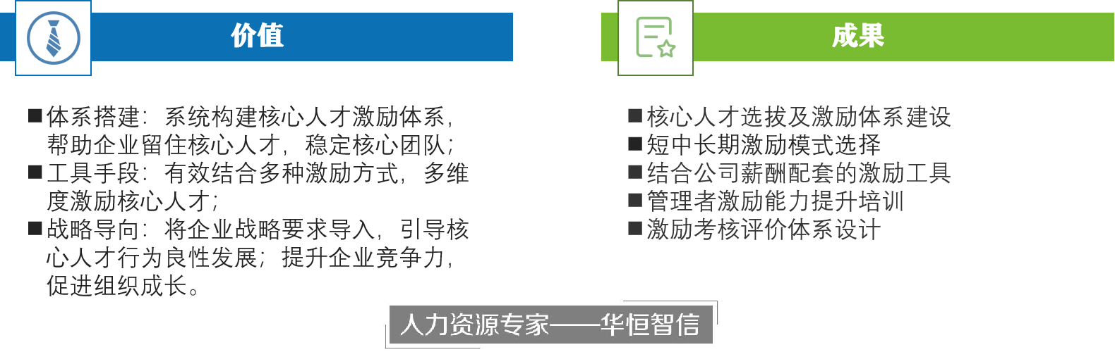 国有企业由于往往受到薪酬总额管控,因此在激励方面要首先明确人才分类。对核心人才的激励首先应实现长短激励的结合,物质激励与短期激励的结合。过多的金钱激励不利于核心员工对企业的忠诚,而给予核心人才更多的非物质关怀以及宽阔的发展空间都能够实现有效的增加核心人才对企业的忠诚。核心人才激励体系的设计其目的就是让核心人才感到企业对他的重视和温暖,感到有很大的发展空间,感到有值得信赖的工作环境,以及工作不努力的严重后果和压力。华恒智信相信,只有系统性的构建核心人才的激励手段,才能最大限度的实现留住核心人才并持续产生价值的目标。