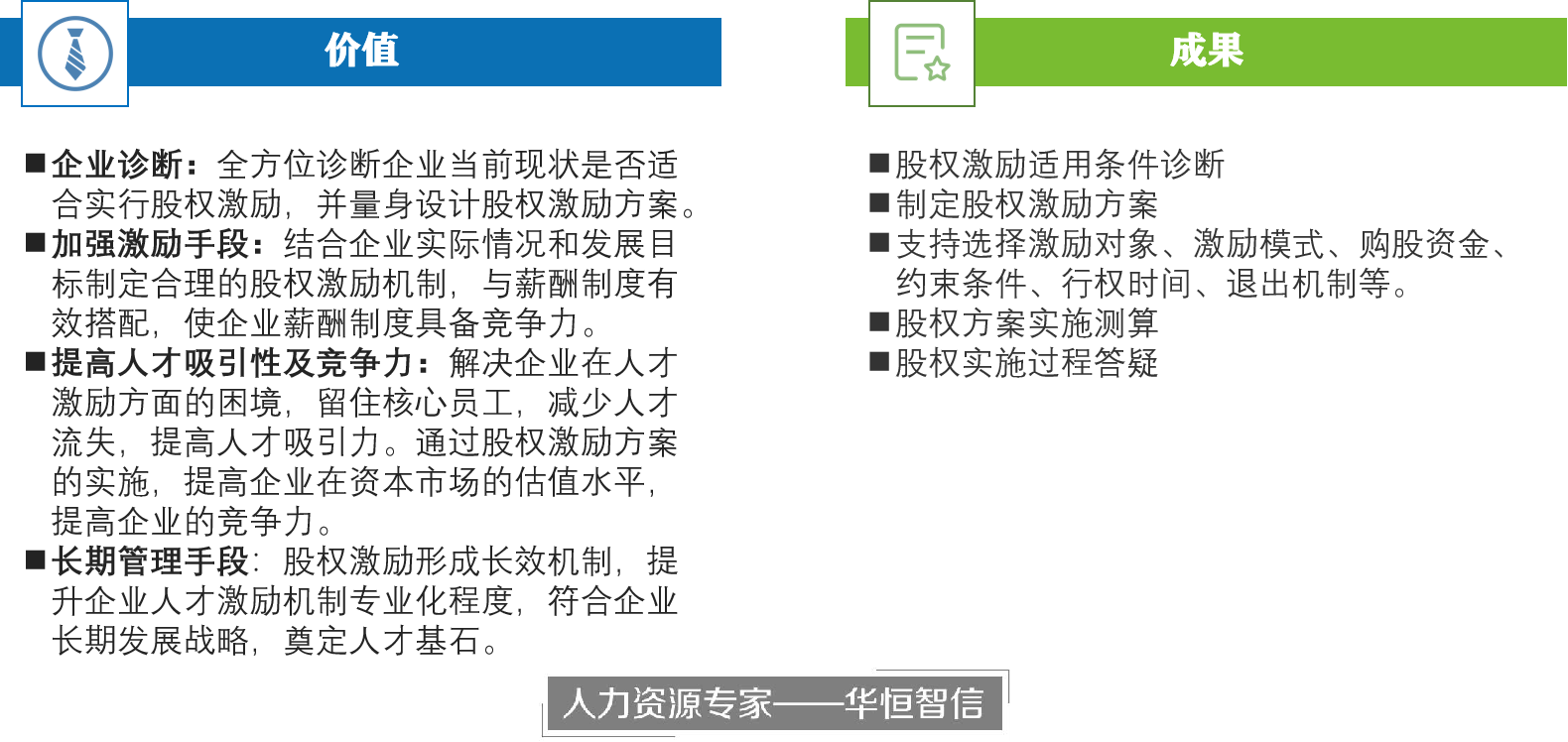 作为企业经营和管理问题方面的专家,华恒智信依托丰富的理论知识和多年的企业管理咨询实践经验,可以为您全方位诊断企业当前现状是否适合实行股权激励,并为您量身设计股权激励方案。华恒智信自开展业务以来,已服务上百家企业,帮助企业解决实际问题,广受客户好评。