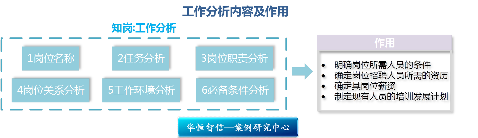 知岗最基础也是最重要工具就是工作分析。所谓工作分析,是对某项工作,就其有关内容与责任的资料,给予汇集及研究、分析的程序。