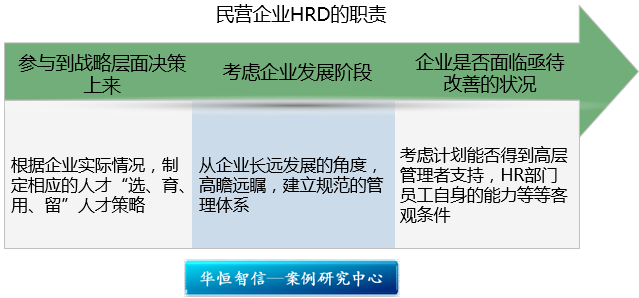 一般来说,外企和国企战略清晰、目标明确、策略得当、计划有序,HRD通常应注重做好管理层面的执行者,执行的好坏将直接影响企业战略目标的实现。而在民营企业,则要求HRD能够更多的参与到战略层面决策者上来,根据企业实际情况,制定相应的人才“选、育、用、留”人才策略。其次,考虑企业发展阶段。对于处在成熟阶段的企业来说,需要HRD更多的从企业长远发展的角度,高瞻远瞩,建立规范的管理体系。另外,还要考虑企业是否面临亟待改善的状况(如果有,那么应该在第一时间高效地解决最紧迫的问题),计划能否得到高层管理者支持,HR部门员工自身的能力等等客观条件。