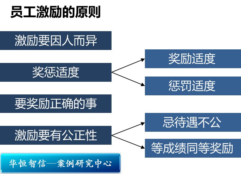在本案例中,我们看到了西门子设计员工激励方案的全部过程,在这其中,华恒智信的老师提醒我们要注意有几个员工激励的原则: