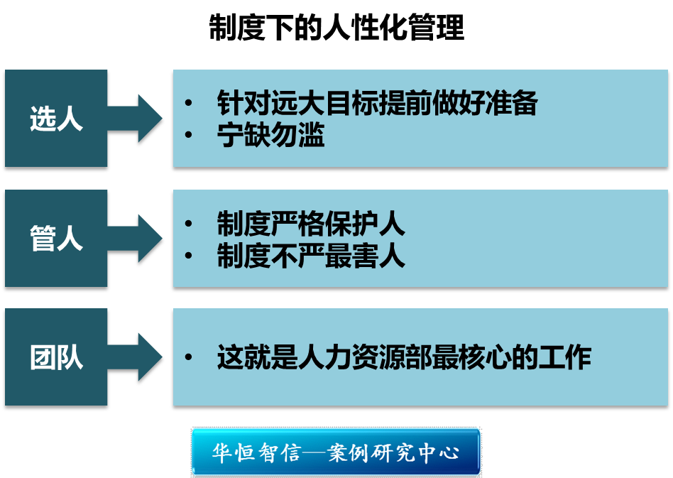 选人:为了使人力资源管理的速度跟上业务发展的速度,我们有两个原则:第一,针对远大目标我们有提前的准备;第二,宁缺勿滥。任伺项目,没有合适的人不干;合适的人,我认为是首要资本,他是所有资本和资源之首。