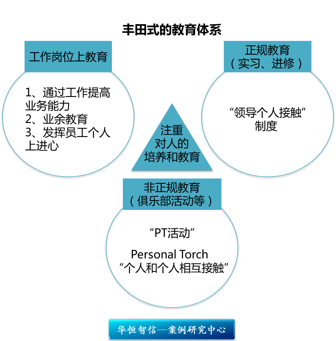 总之,丰田汽车工业公司的人才培养在形式上大体上可分为工作岗位上教育、正规教育(实习、进修)、非正规教育(俱乐部活动等),其中最活跃的是非正规教育。