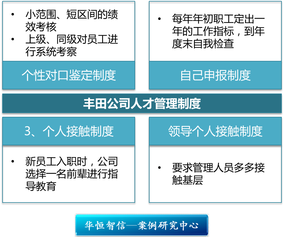 在丰田公司的人才培养体系中,有一些十分新颖而实用的人才管理制度。这些管理思路,对于其它企业的发展也是很有参考价值的,这里我们重点来介绍一下。