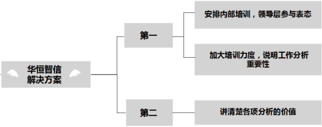 第一,先安排内部进行培训,一定要让领导层参与表态,同时我们要加大培训力度,说明工作分析的重要性。