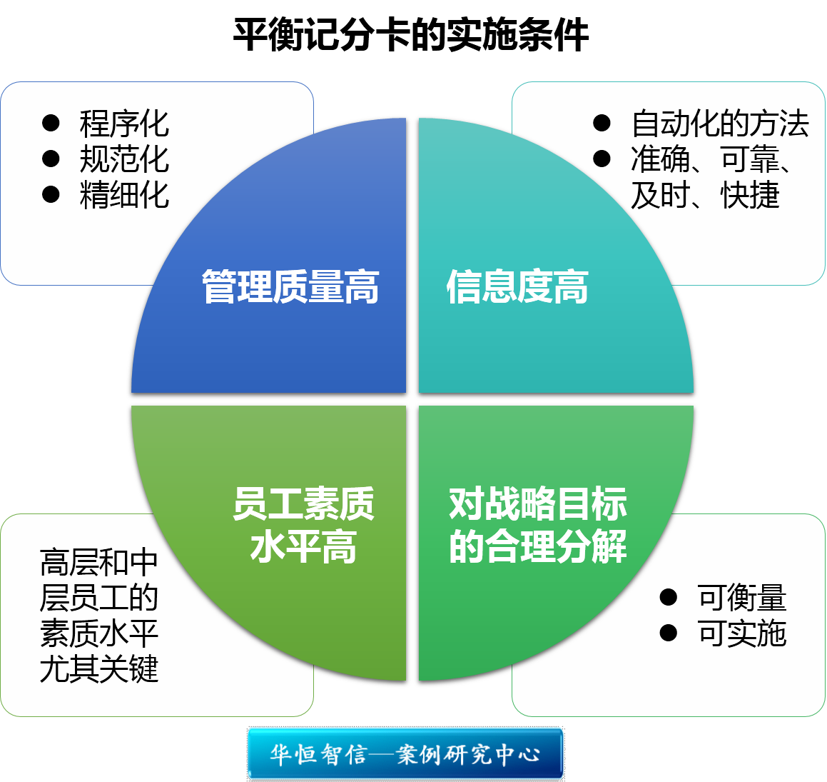 华恒智信认为,平衡计分卡的成功实施是有一定条件的: