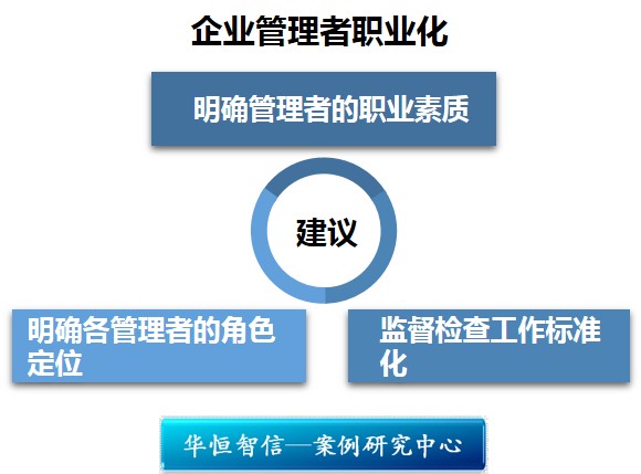 华恒智信的顾问专家曾做过很多与企业管理者职业化有关的项目工作,对管理者职业化也有一些自己的见解。指出管理者职业化培养需要做好多方面的工作,包括明确管理者应具备的素质、做好管理者的角色定位以及保证监督检查工作标准化。