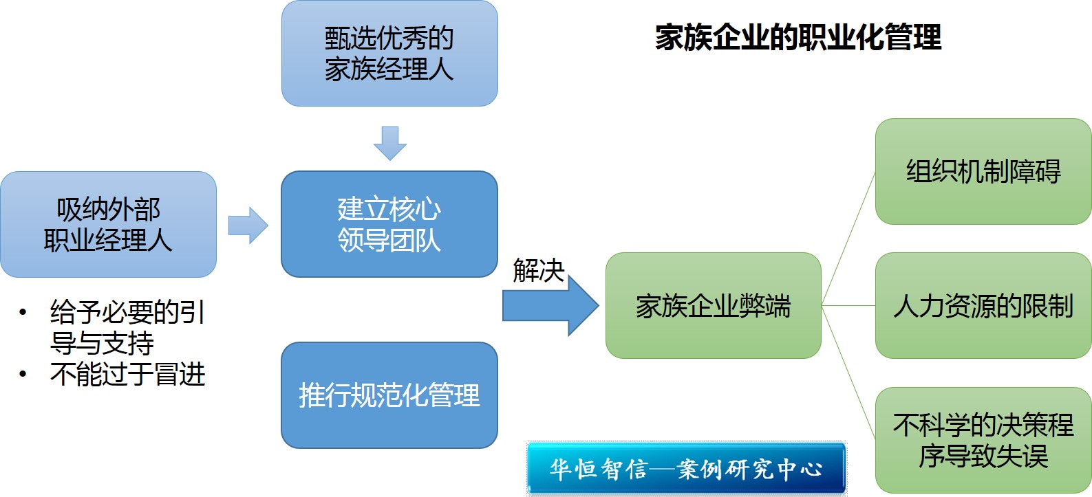 职业化管理是许多中小型企业一直在思考的问题。用家族制的方法管理企业已经成为70%-80%的民营企业的普遍管理模式,是否要引入外部经理人对部分企业来说是个艰难的抉择。但不可否认的是,在家族企业规模扩张的过程中,引进外部人才、建立健全的管理制度是必由之路。对此,华恒智信给出以下几点建议,给成长中的企业作为参考: