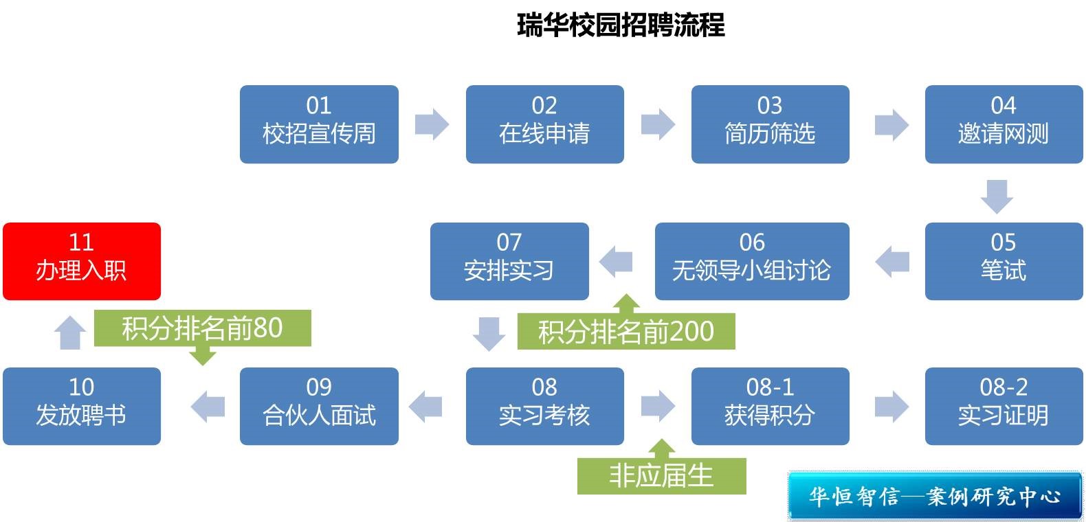 针对非应届毕业生,瑞华实施了“校园会员计划”,将招聘触角延伸到大一的新生,让学生提前了解企业。学生可通过参与各类活动来体验瑞华的文化,并取得相应积分,所获积分可累计到毕业季的校招中,让学生在校园内就能够得知社会的发展现状,利于今后的职场发展。