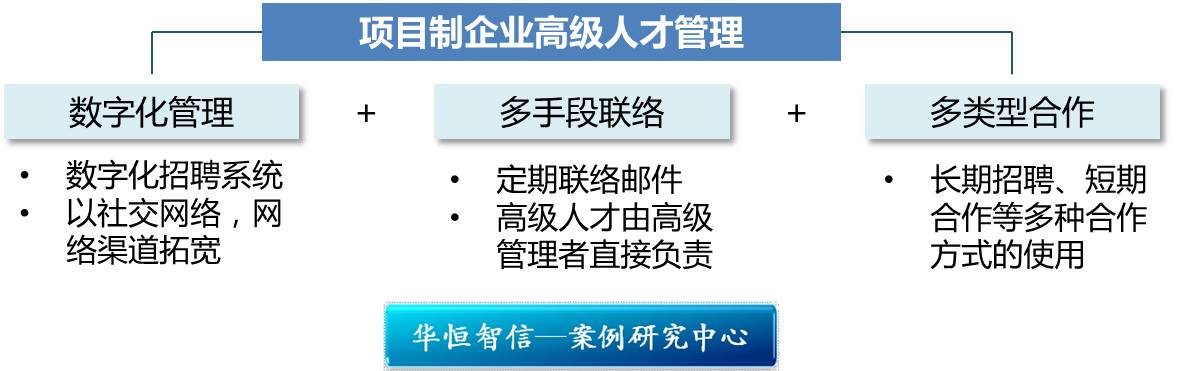 以会计师事务所为代表的项目制企业可能面临这样的问题:某些项目对人才的素质能力要求特别高,但这样的项目数目又比较稀少。企业如果长期聘用能达到要求的人才会造成人工成本过高的问题。所以,对高级人才库中的人才不仅仅能安排到空缺的职位中,也能采取更灵活的合作方式,把“好钢用在刀刃上”。企业可采取的办法有如采用单项目聘用、顾问制等。