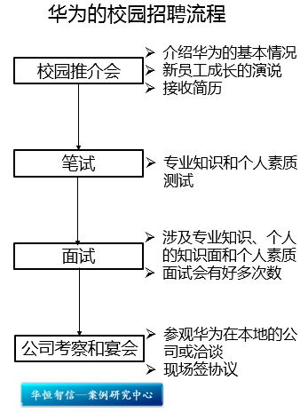 校园招聘是外部招聘的一种形式,它越来越多地受到企业的重视,成为企业招聘人才的重要途径之一。华为的校园招聘流程科学合理,对华为招揽人才具有重要的作用。