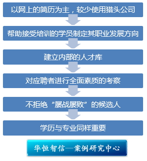 据牛艳娜介绍,与爱立信目前合作的猎头公司比较少,全国有三家,比较常用的只有一家,而“副总裁、总经理等高级职务很少使用猎头找”。这可能也是她不愿意过多评论猎头公司的一个原因,她本人也经常受到猎头公司的骚扰。