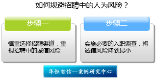 1.慎重选择招聘渠道,重视招聘中的诚信风险。目前,对于高科技企业来说,招聘往往有这样几个渠道:网络、校园、猎头和内推。很难说这些方式的优劣, 高级人才通过猎头或推荐的比较多,虽然花费高,但是针对性强、匹配度高;而中低端人才招聘,则较多使用网络招聘,尤其在人才需求量大的时候,网络招聘就更显出优势。因此,对于大多数企业来说,网络招聘仍然是招聘的主要渠道。但是,对于网络招聘,一些企业表示,往往招聘信息发出后,就会有大量简历进入,而中小企业收到简历后的第一轮筛选,往往是由人力资源部门经理或相关招聘工作负责人员进行(视公司规模而定),而筛选的标准无非是这个人的年龄、学历和基本工作经历。这样就可能产生一个问题,往往挑选出的简历,当应聘者来面试时,部门领导或者副总经理却不满意甚至一个也看不上。这种错位,一方面体现了人力资源部门经理和职员个人素质和经验的重要性,但是对于中小企业来说,拥有这方面的优势资源是不容易的,因此,企业希望能够有一种更好的衡量人才的指标或者是更有效率又节省成本的招聘方式。一位从事人力资源工作的人士表示,现在网站争夺更多的求职者信息,会在一定程度上鼓励求职者弄虚做假,这种情况是很普遍的。因此,求职者信息的真伪与其个人的实际能力,通过简历甚至一次面试很难分辨。中关村某上市公司人力资源专员说:“我们这边入职的大多数还是通过网络招聘过来的,也有一些人员在入职之后发现有不诚信的行为,但是也没有什么办法,试用期的主要作用就是考核员工的德行和能力。”招聘的人才,能力自然是重要的,但是,做事之前先做人,诚信是一个人才的基本。上文提到的案例就是最好的说明。而传统简历模式,只能够提供个人工作的基本情况,企业无法据此判断真伪,也无法看出求职者的德行和诚信,因此,企业的这些感受无疑对现有的网络招聘模式提出了新的要求。