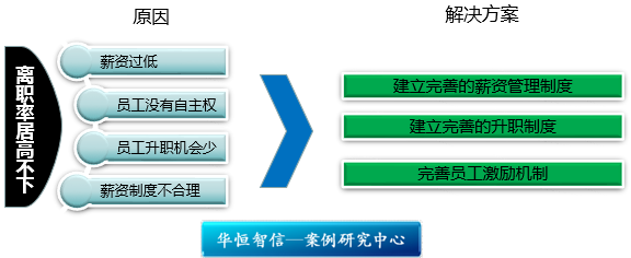 首先,一般地,员工会对因为自己的岗位对薪资有一个基本的期待,如果工资过低,员工会产生不满。而案例中的公司,其员工薪资低于市场20%-30%,这是造成离职率高升不下的主要原因之一。