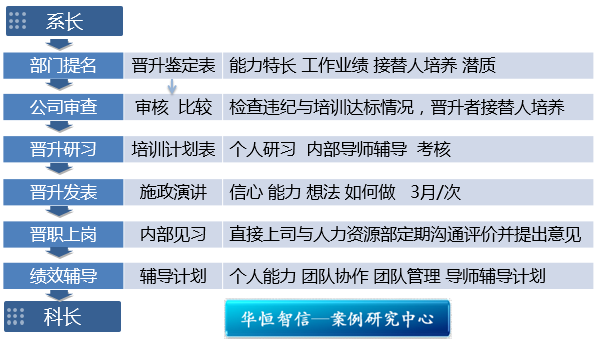 部门提名—公司审查---晋职研习——晋职发表——晋职上岗——绩效辅导