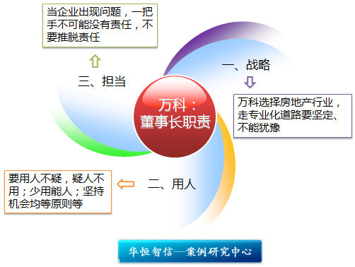王石以为,万科董事长需要做三件事:第一,战略;第二,用人;第三,担当。