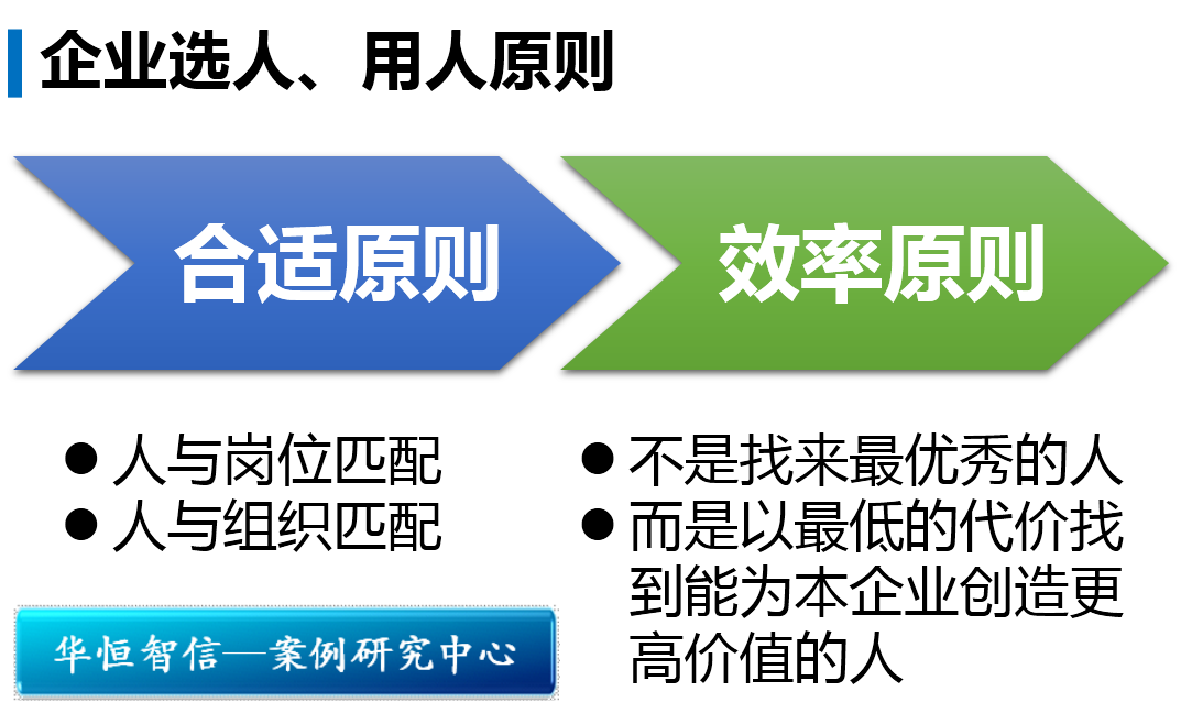 然而,这套标准并不是放之四海皆准的,现实中能符合这套标准的人才也很难找到,企业在用人时不应盲目苛求员工具备这些特质。华恒智信认为,企业在选人、用人时应当遵循以下原则: