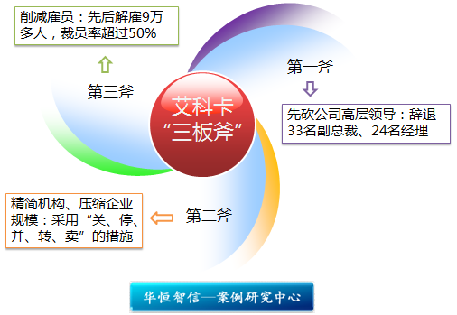 第一斧,先砍公司高层领导。对那些身居高位而毫无建树的平康之辈,一概撤掉,公司35个副总裁先后辞退了33个,高层部门的28名经理撤掉了24个。
