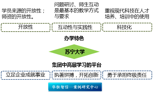 总体来看,苏宁大学在办学上包含了以下三大特色。
