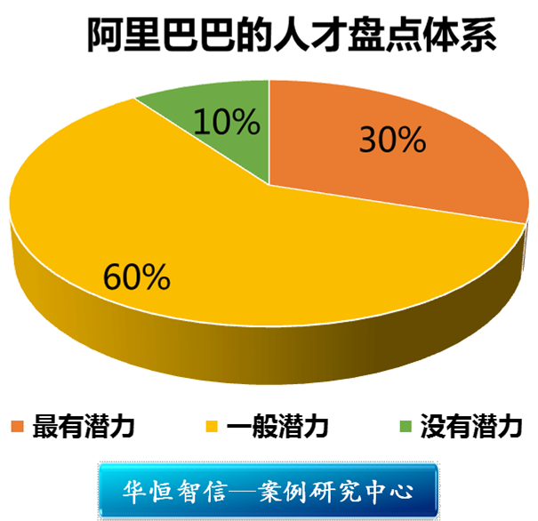 在阿里巴巴的管理体系中,对人才是特别敏感的。阿里巴巴有一套自己的人才盘点体系,即30%是最有潜力的,60%是潜力一般的,10%是没有潜力的。