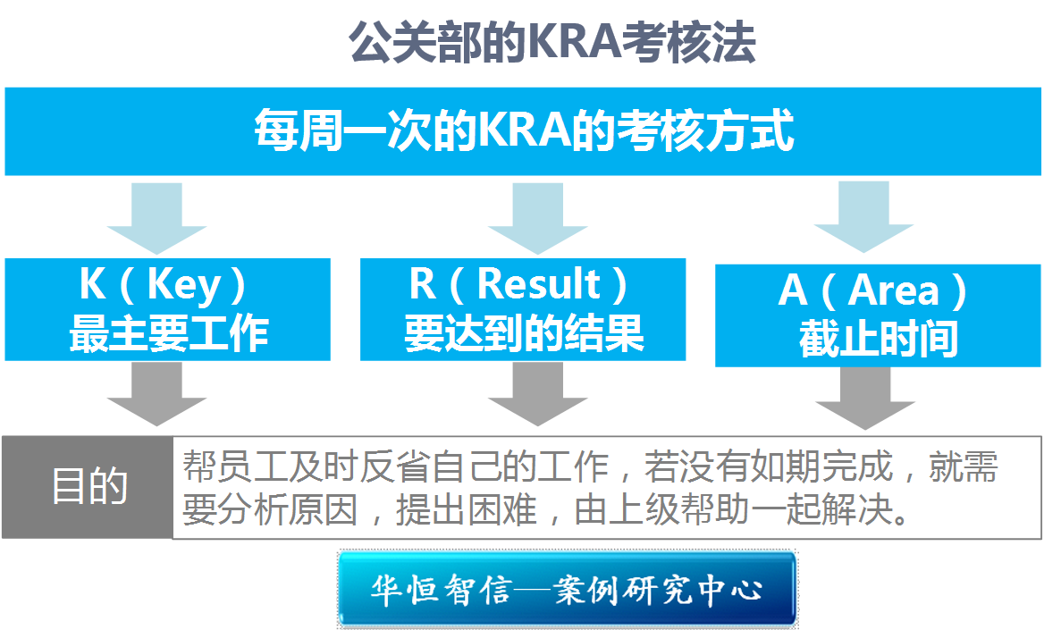 对管理人员和一线员工的考核,标准各不相同。例如公关部,采用的是每周一次的KRA的考核方式,K(Key)是这个周你要完成的最主要的工作,R(Result)是每项主要工作要达到的结果,A(Area)是每项工作完成的截止时间。这样紧凑的考核是为了帮员工及时反省自己的工作,若没有如期完成,就需要分析原因,提出困难和障碍,由上级帮助一起解决。对于长时间不能完成工作的员工,丽嘉会通过“口头通知”、“书面交流”等方式与员工进行沟通,若迟迟不能改进的话,就要考虑工作的流动,甚至是否继续留在丽嘉工作的情况。但这一切,哪怕是中止合同关系,丽嘉都保证是在给予员工最大信任和完整培训的前提下发生,始终体现他们在员工身上坚持的绅士淑女态度。