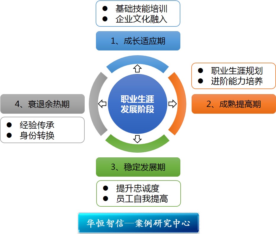 成长适应期,这个阶段的员工刚刚进入企业,需要企业安排关于岗位的基础知识技能的培训,同时还应该辅以初步的职业生涯规划教育,引导员工树立明确的职业发展目标。让员工能够顺利融入自身岗位,同时获得职业技能的提升。