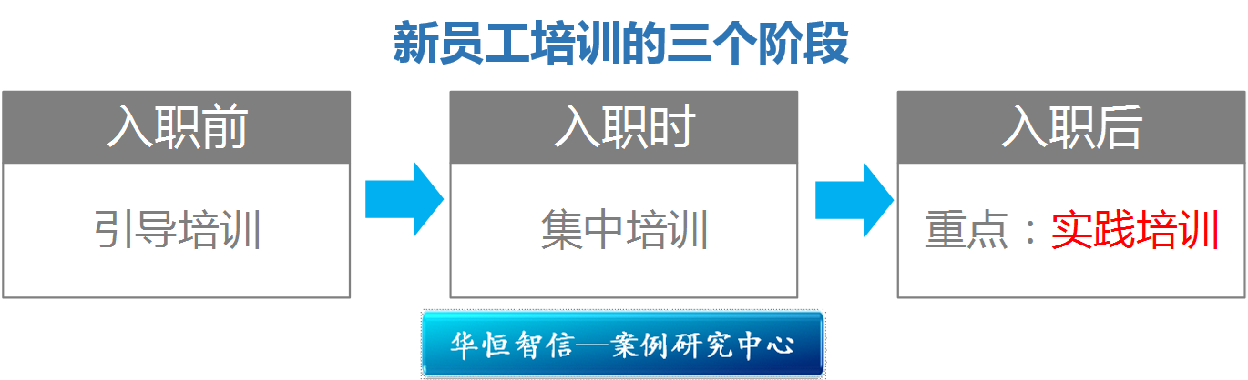 华为对新员工的培训,可以划分为三个阶段:入职前的引导培训,入职时的集中培训,入职后的实践培训。实践培训是三个阶段的重点。