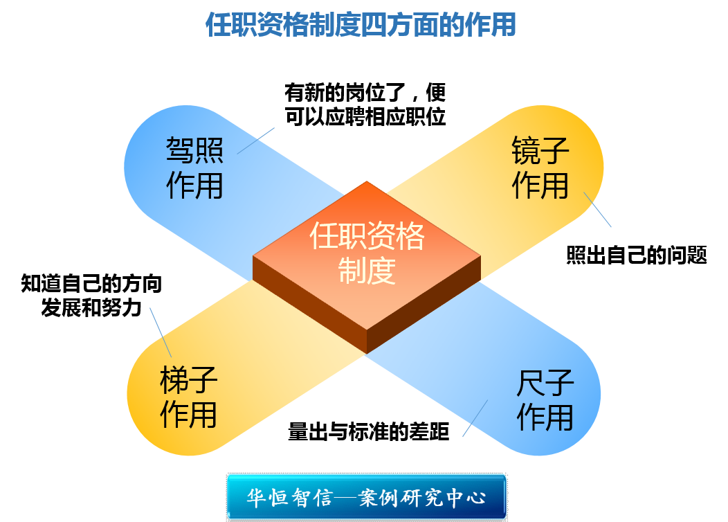 任职资格制度的实施,较好地发挥了四个方面的作用:一是镜子的作用,照出自己的问题;二是尺子的作用,量出与标准的差距;三是梯子的作用,知道自己该往什么方向发展和努力;四是驾照的作用,有新的岗位了,便可以应聘相应职位。