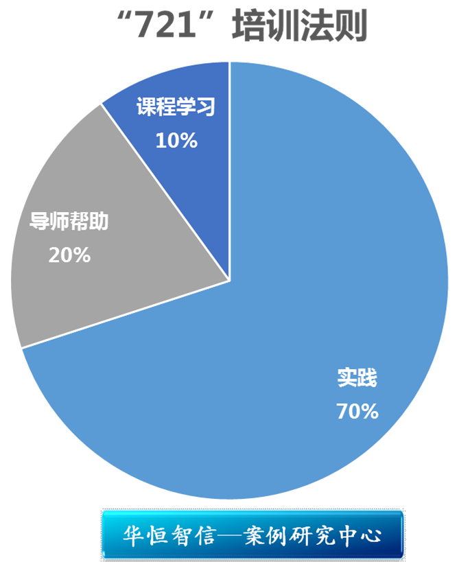 多年来,华为对自己的培训体系不断进行优化,尤其近几年来,华为取消了过去的授课式培训和网络化授课方式,在培训指导思想上进行了较大的调整,明确提出了“721”培训法则,即70%的能力提升来自于实践,20%的能力来自于导师帮助,10%的能力来自于课堂学习。