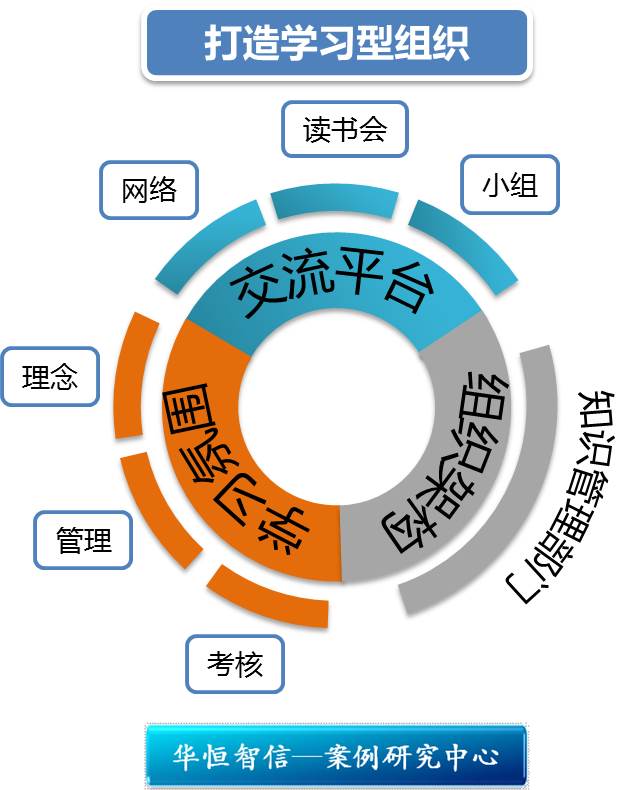 首先,企业应该从组织架构入手。建议设立专门的知识管理部门来负责学习型组织的建设的维护,主要工作为标竿管理、外部信息收集和发布、企业内部问题公布和意见收集、知识共享平台的建设和维护,并且配合人力资源部进行相应的考核。