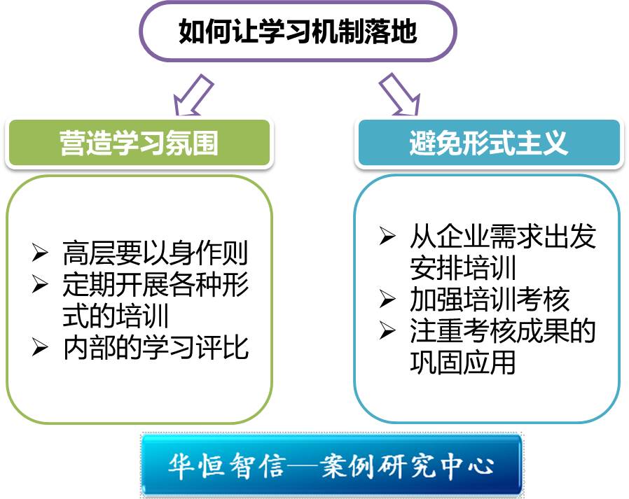 那么,如何才能确保学习机制真正落地呢?华恒智信有几点建议:
