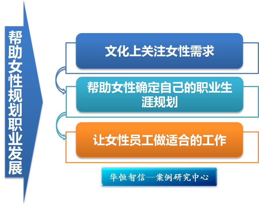 2.帮助女性确定自己的职业生涯规划。很多女性在和男性竞争的时候往往不够自信,对自己的未来发展也有很多的疑惑,如果企业帮助女性员工规划切实可行的职业生涯,女性员工将会有一个更加清晰的发展目标。