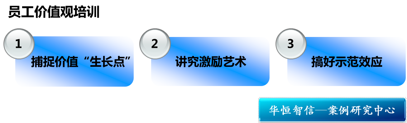 在本案例中,提出了要实现培训的有效性,除了进行岗位技能培训外,还需要对员工进行价值观的培训,即将企业文化渗透入员工的观念中,使内部凝聚力得到增强。对此,华恒智信专家认为,企业在树立企业文化的过程中,宜放宽思路,采取多渠道进行,更快更好的改进员工精神风貌,增强员工的忠诚度。在对员工进行价值观培训的基础上,可以辅以如下措施:
