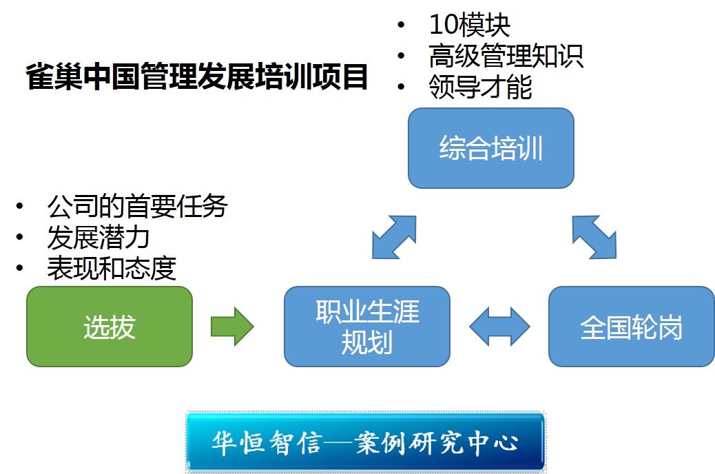 如何发展本土管理人才是国际人力资源管理的一个重要课题。对跨国公司而言,本土员工担任管理职位可以大大降低人力成本,但培训投入、文化契合等问题也难以避免。如何选拔,如何培训,如何留人,雀巢中国的管理发展培训项目给了我们一些启示。华恒智信认为,构建完备的培训机制和晋升机制是企业留住人才的关键,以下几点供参考: