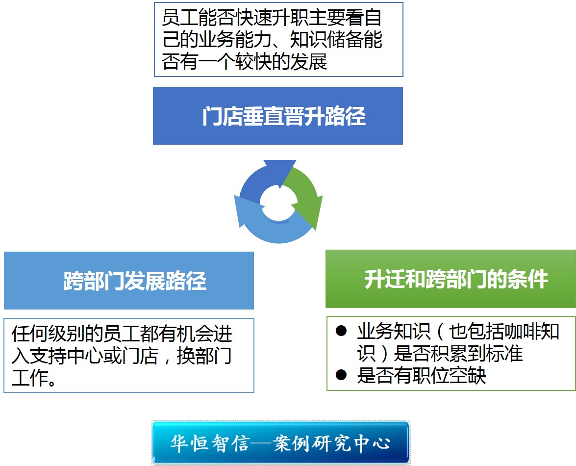 星巴克门店和支持中心的人员是双向流动的。比如说,一位具备意愿的门店员工在得到经理的推荐之后,可以参加支持中心的空缺职位面试。余华说,每一年星巴克都有超过20%的门店员工进入支持中心。
