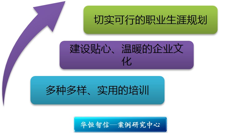 结合各大名企的经验,华恒智信认为,要想让员工获得可持续发展进而实现企业的长远发展,多种多样、实用的培训是第一位的,只有员工的技能跟上了,才能为未来的发展打下坚实的基础;建设贴心、温暖的企业文化,从心里心理上获得员工的认同,把企业当做家一样来爱护;让员工制定切实可行的职业生涯规划,企业提供切实的职业发展路径,绕过员工更加清晰地看到自己奋斗的前景。