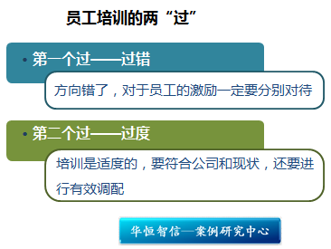 培训是一门科学,任何“过”与“过”都是不对的:培训都想标新立异,能让员工记得住有触动,可是用错了力就不对了;培训是公司发展的“助推剂”,但再过度的培训也是不能解决企业的成长问题的。