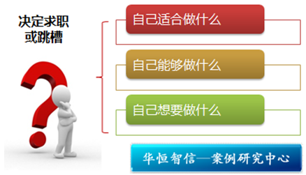 在决定求职或跳槽以谋求加薪、晋升的时候,首先要考虑的不是目标工作的薪水是否高、职务是否有晋升、公司规模是否比现在的规模大等因素,而是应该明确自己适合做什么、自己能够做什么以及自己想要做什么。如果不明确这三点的话,即使拿到高薪、高职位以及大公司的OFFER,也如昙花一现,稍纵即逝。一旦行业回调,公司变动,自己必然失去发展方向,由于自身认识的不明确而导致的竞争力不足必将增加个人择业和跳槽的风险。只有确保每一步的事业发展都少走弯路,才能在最短的时间内充分调动、挖掘自己的职业竞争力,并以最快的速度完成职业目标的计划和实施。