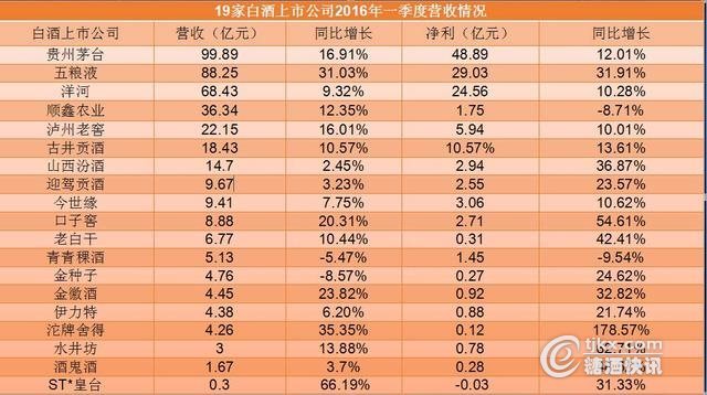2016年上市酒企的一季报看出,多数酒企的营收和净利润均实现增长。显示白酒主流企业基本盘趋于稳定。