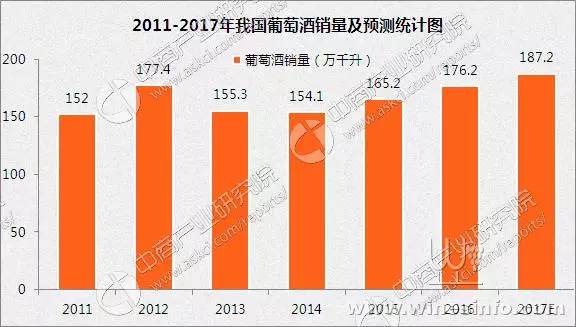 从我国葡萄酒零售量情况分析:2016年,我国葡萄酒销量176.2万千升,同比增长6.7%。预计2017年我国葡萄酒销量将到达187.2万千升.