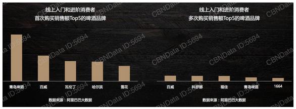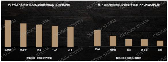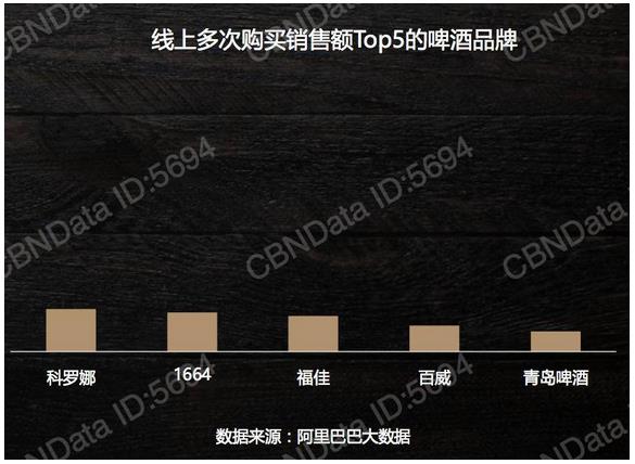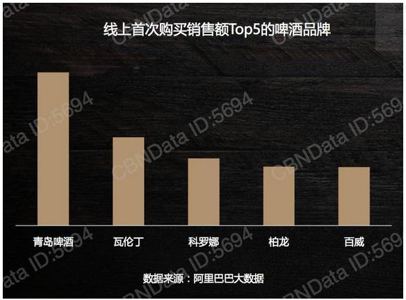 线上首购最受欢迎的啤酒品牌分别是中国的青岛啤酒、德国的瓦伦丁、墨西哥的科罗娜、德国的柏龙和美国的百威。