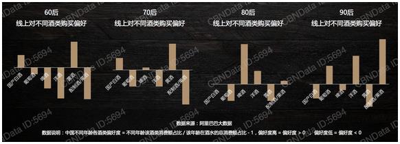 男性消费者一直是线上酒水消费市场的主力,其白酒、洋酒、啤酒偏好度明显高于女性消费者。按年龄来看,最喜欢啤酒的是80后。