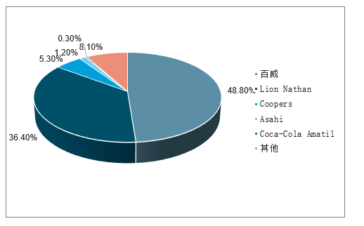 在市场参与者竞争方面,百威和LionNathan二者占据了绝大部分的市场份额,2018年百威市场份额占比达到48.8%,较2013年上升4.0个百分点;LionNathan市场份额占比为36.4%,较2013年下降9.3个百分点。