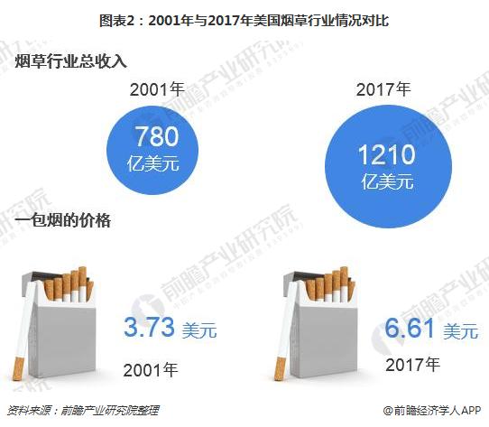 实际上,美国的卷烟销量下滑了,烟民变少了,但行业收入却不断上升的原因主要是由于美国香烟公司在不断提升价格。2001年美国香烟平均1包只卖3.73美元,到2016年价格上涨了72.12%,一包香烟要卖6.42美元。但卷烟加价脚步从未停止,2017年9月,美国3家大的卷烟制造商菲莫国际、雷诺兹烟草公司以及帝国品牌公司将每包普通卷烟的价格提升了约0.1美元。今年3月,今年3月,每包普通卷烟的价格再次上涨0.09美元,一包烟的平均价格约为6.61美元。