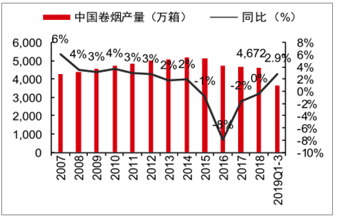 2019年烟草行业去库存进入尾声,卷烟产量稳步修复;调结构带来高端化趋势眀确,单价持续提升,驱动烟草公司利税增速回升,我们预计2019全年工商税利同比增速可修复至5%左右,烟标行业迎来向上拐点。