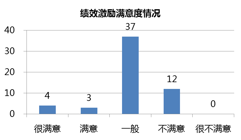 根据相关资料分析可知,珠田市烟草公司员工对绩效激励满意度偏低。其中,只有7位员工,认为公司绩效激励是满意或者很满意的,占绩效激励满意度的13%。大部分员工认为公司的绩效激励机制是一般的,占66%。还有21%的员工认为企业的绩效激励是不满意的。这些说明烟草公司的绩效考核制度存在不足,对员工工作的激励正面效果较小,并且具有一定的负面影响。