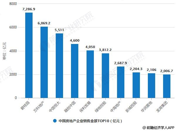 2018年1-12月中国房地产企业销售金额TOP10统计情况