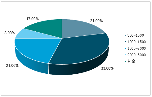 目前我国房地产评估行业中,营业收入为2000万-5000万(含)占比为8%,1500万-2000万(含)占比为21%,1000万-1500万(含)占比为33%,500万-1000万(含)占比为21%;其中房地产评估业务占比为60%以上的机构占比高达76%。