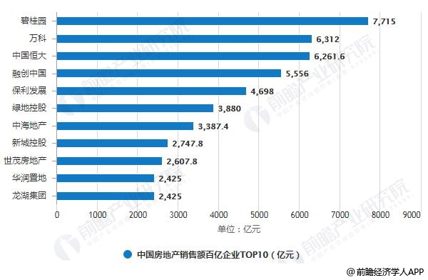2019年中国房地产销售额百亿企业TOP10统计情况