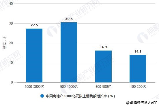 2019年中国房地产3000亿元以上销售额增长率统计情况